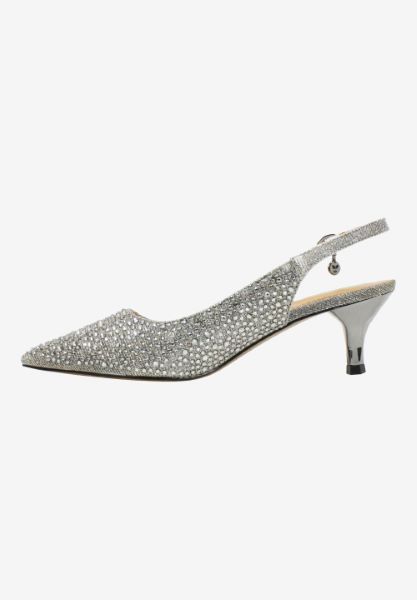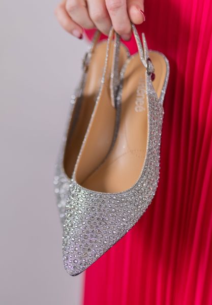 WOMEN'S GREY FABRIC/RHINESTONES SLING BACK PUMPS