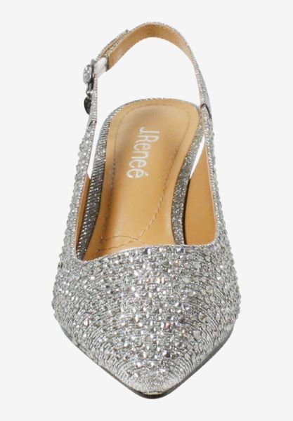 This slingback pump is made of fabric/rhinestones with a synthetic lining and synthetic sole on a 2 inch heel. This style also features a pointy shaped closed toe with a buckle closure. Shop...