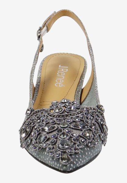 Elegant low heel sling back wrapped in beautiful floral mesh and jewel adorned ornament. Wear with anything from your favorite cocktail dress to dark denim and silk blouse. Easy update for...